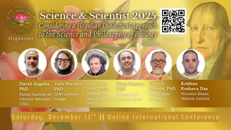 This conference welcomed speakers from the Third Way of Evolution (František Baluška and John Torday), Scientific and Medical Network (Joan Walton), International Society for Science and Religion (Michael Reiss), as well as cell biologists (Brian J Ford), Hegelian philosophers (Robert M Wallace), and others, to discuss topics including plant intelligence, cellular sentience, holistic approaches to science, the philosophy of G.W.F. Hegel, Bhagavat Vedanta philosophy, and more.